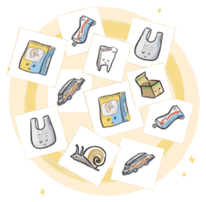 „zielona” wersja popularnej i lubianej przez dzieci i dorosłych gry “Dobble”. Standardowe w dobble elementy zastępują… kontenery i śmieci!