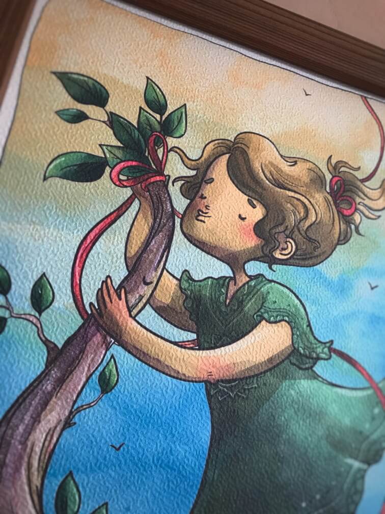 Wydruk A4 obrazu „Połączeni” na papierze akwarelowym.